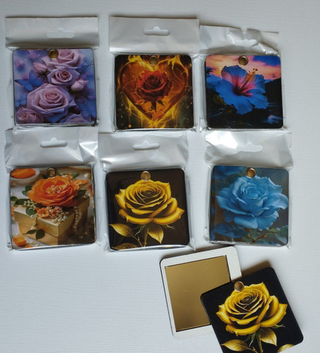 آیینه جیبی چوبی طرح گل 12 عددی